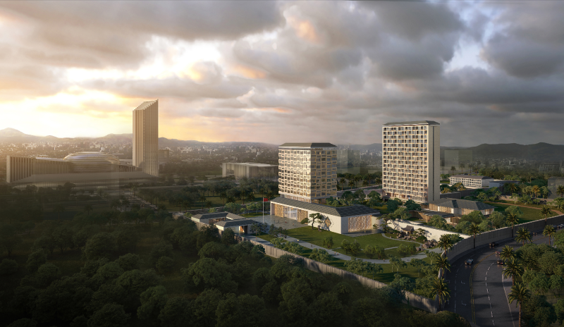 中國駐非盟使團新建館舍工程建筑面積2.6萬平方米,位于埃塞俄比亞首都亞的斯亞貝巴規(guī)劃中的城市中央商務(wù)區(qū),毗鄰非盟總部,項目將與非盟會議中心共鑄未來中央商務(wù)區(qū)的城市中心形象。建筑在充分考慮當?shù)貧夂?、城市、文化等因素的基礎(chǔ)上,將中國文化與使館的使用功能進行有機融合,著力構(gòu)建多元、高效、宜人的特色使館和文化傳播的載體,同時體現(xiàn)了中非文化的匯聚共融。