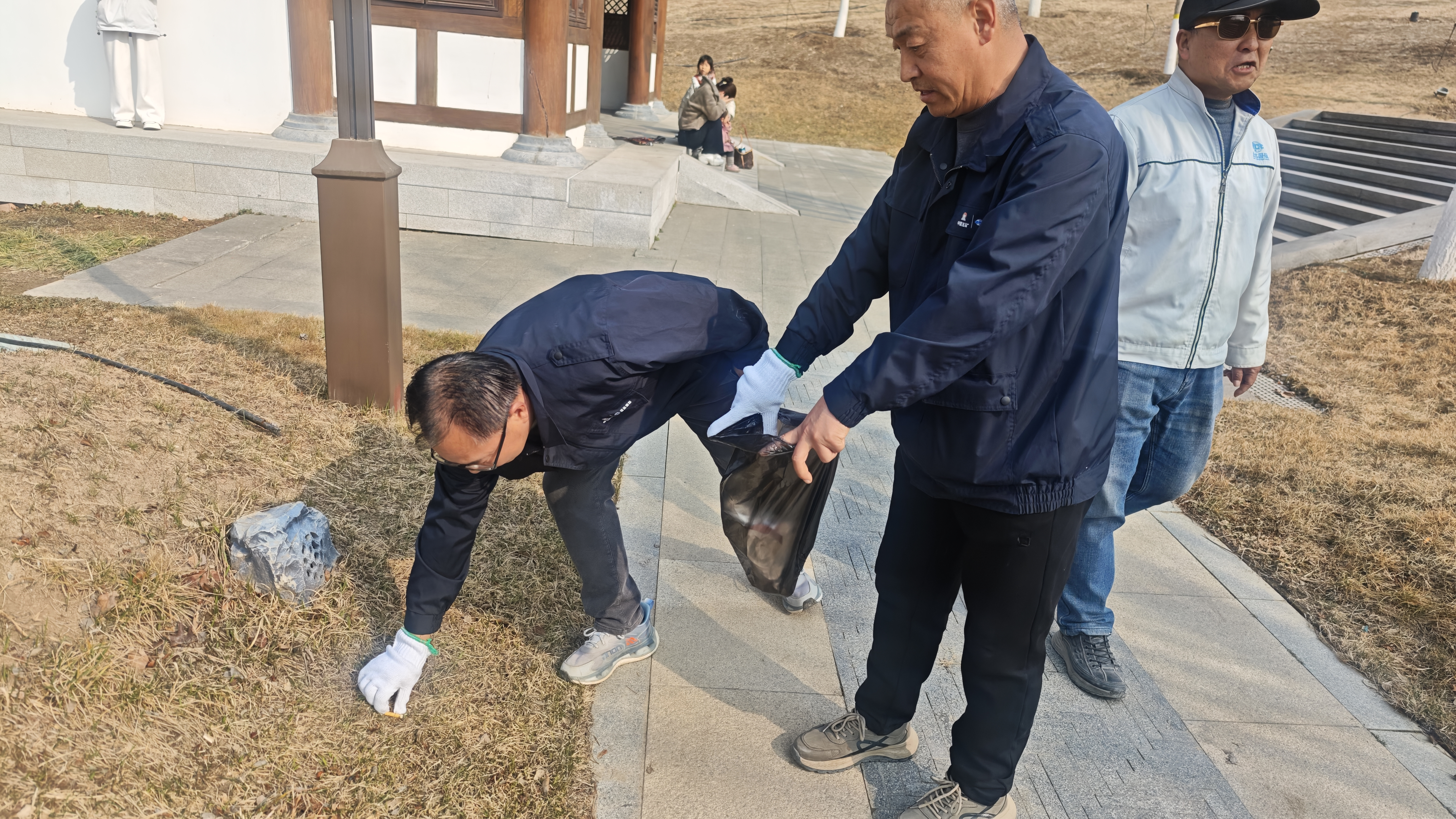 春風輕撫悅容公園的湖面,泛起粼粼細碎金光。活動現場,平日里手持圖紙與儀器的工程師們,此刻俯身于草坪與步道之間,認真撿拾散落的水瓶、紙屑,并細心分類裝袋。盡管手套沾滿塵土,但他們的笑容卻如旭日般燦爛。從建筑工地的“質量把關人”,轉變為城市環境的“清潔守護者”,遠達國際的員工們用實際行動詮釋了責任與擔當的深刻內涵。