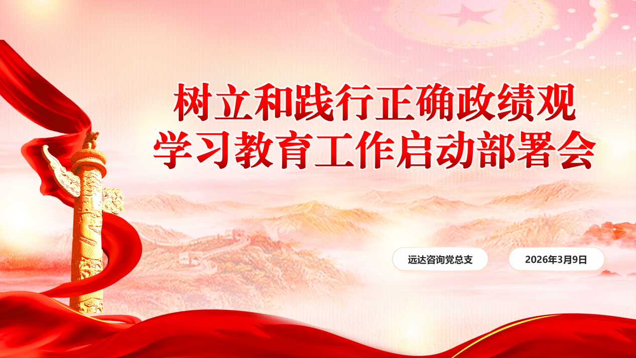 2026年3月9日,遠達咨詢黨總支召開樹立和踐行正確政績觀學習教育工作啟動部署會,學習貫徹習近平總書記關于樹立和踐行正確政績觀的重要論述,傳達學習中央黨的建設工作領導小組會議部署、中央辦公廳有關通知要求以及國務院國資委黨委擴大會議暨黨的建設工作領導小組會議精神,貫徹落實集團公司黨組有關要求,啟動部署遠達咨詢開展樹立和踐行正確政績觀學習教育。公司黨總支書記、總經理張金濤主持會議并講話,全體黨總支委員參加會議。